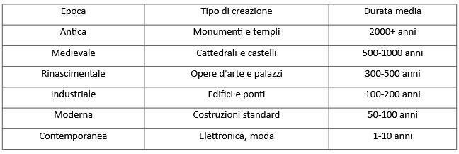 La durata delle creazioni umane nel tempo